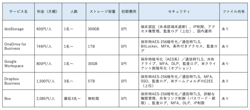法人向けクラウドストレージを選定する際は、各サービスの特徴を横並びで比較できる一覧表の活用が有効です。